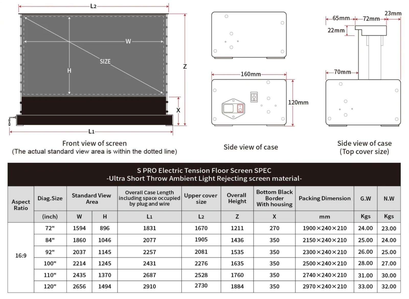 Space-Saving Elegance β No wall installation required; the screen retracts into a slim floor case when not in use.