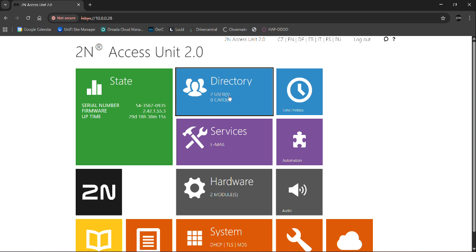 Open Google Chrome / Microsoft Edge / Safari and enter the IP address of the 2N Access Unit in the address bar.