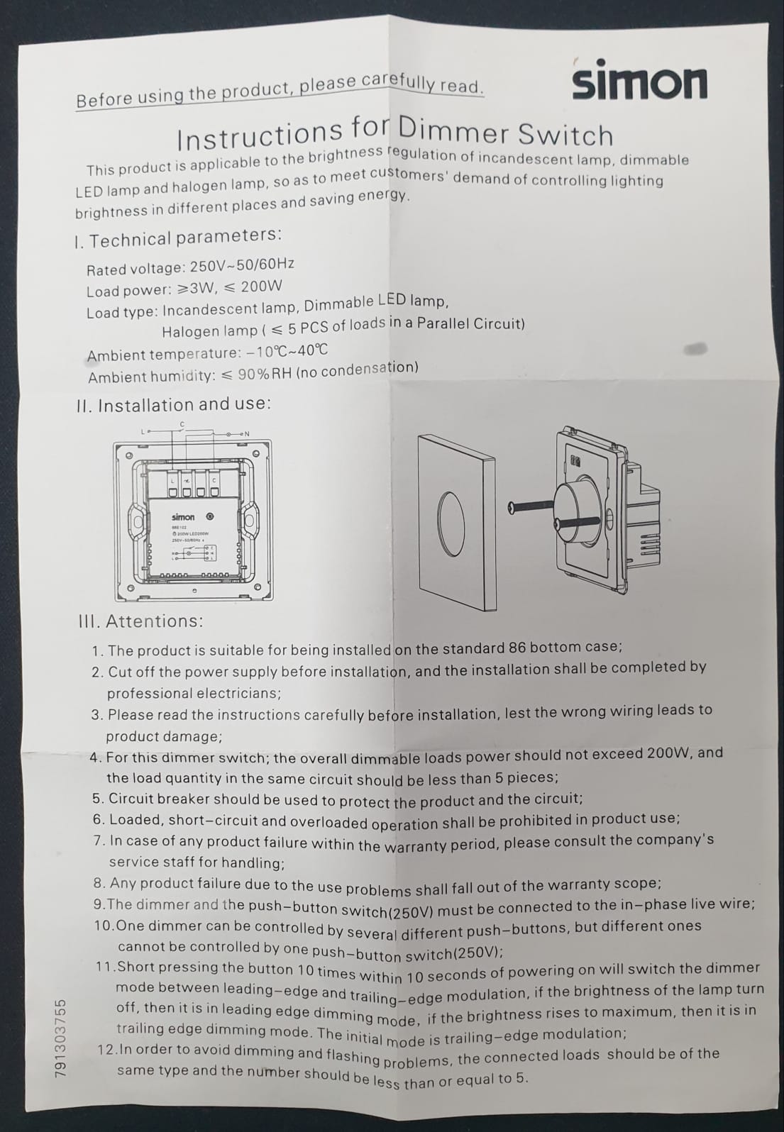 66E102G SIMON M7 Gem (Glass) Rotary 200W Dimmer (TRIAC)